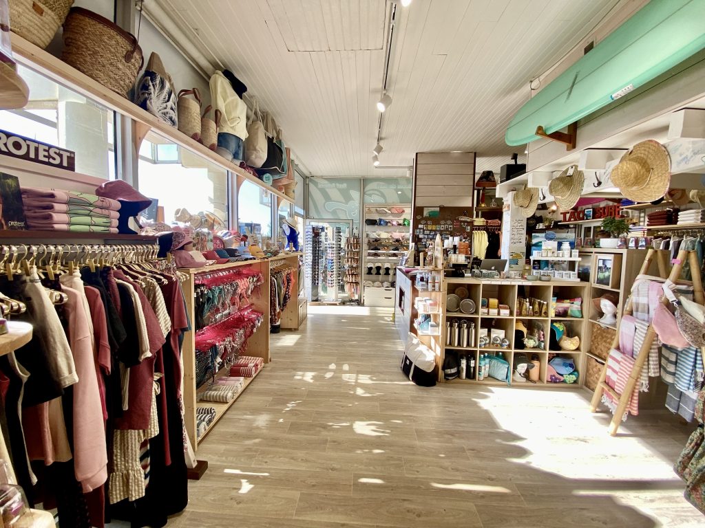 Découvrez aussi notre collection textile soigneusement sélectionnée pour femmes, hommes et enfants, ainsi qu’un large choix de tongs, chapeaux, produits solaires et jouets de plage.